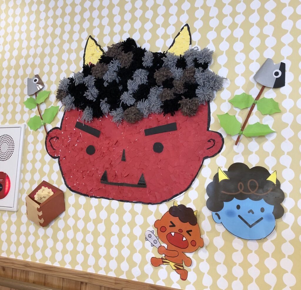 オニとひな壇の豪華な装飾は入居者様が子供達とのレクの為に